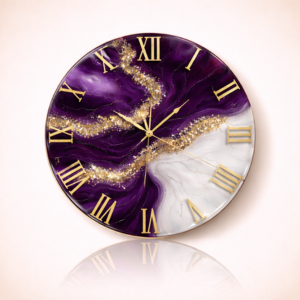 “Elevate your space with this handcrafted resin wall clock featuring a striking marble-inspired design”.