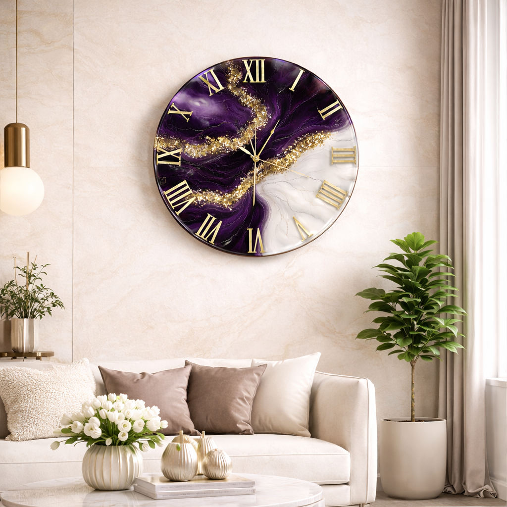 Add a touch of sophistication to your décor with this premium handcrafted resin wall clock. Each piece is individually crafted, making every clock unique with its own natural patterns and textures that create a luxurious, art-inspired look. The polished finish reflects light beautifully, while the raised numbers and sleek hands ensure easy readability and timeless charm. Built from high-quality resin, this clock is durable, lightweight, and designed to last. Whether styled in a modern, contemporary, or luxury interior, it serves as both a functional timepiece and a stunning wall art accent.
